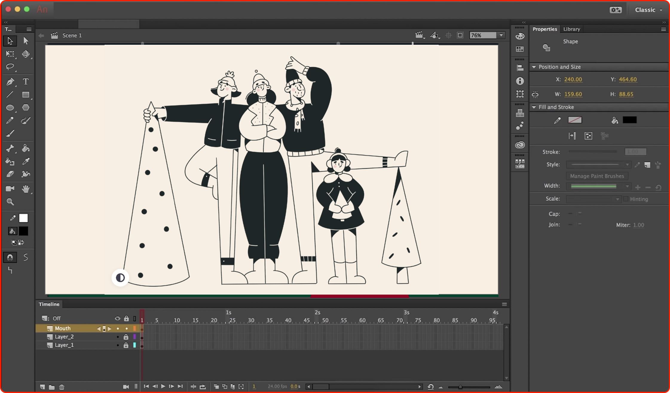 Animate CC is an animation and multi-media authoring software primarily used to create graphics for TV, cartoons, websites, games, etc.