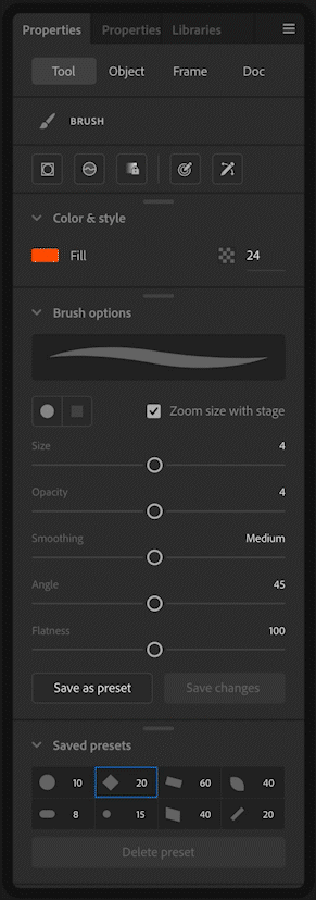Animate’s usage by a number of versatile animators makes workspaces very customisable- authors like to set up personal workspaces according to their workflows. An interesting feature request was that of exporting and sharing workspaces, which especially helps animation professors and other serious animators share their libraries and workspaces with other co-authors or students.