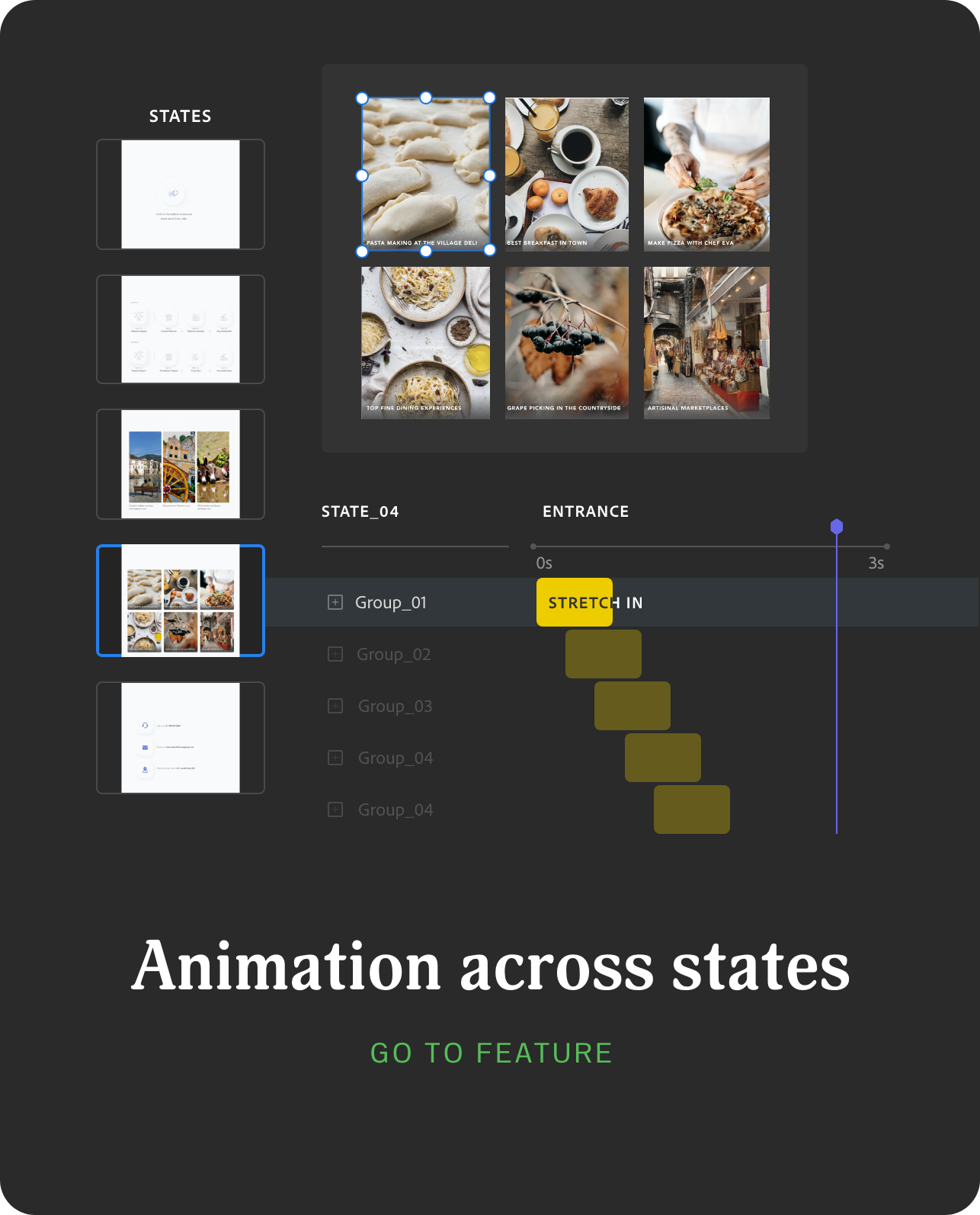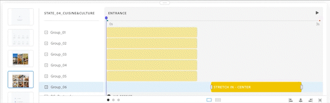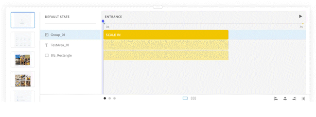 Authors can switch between the working and summary modes, to configure and preview animations across states. They can also manipulate the duration of the animation from the timeline, or the PI.