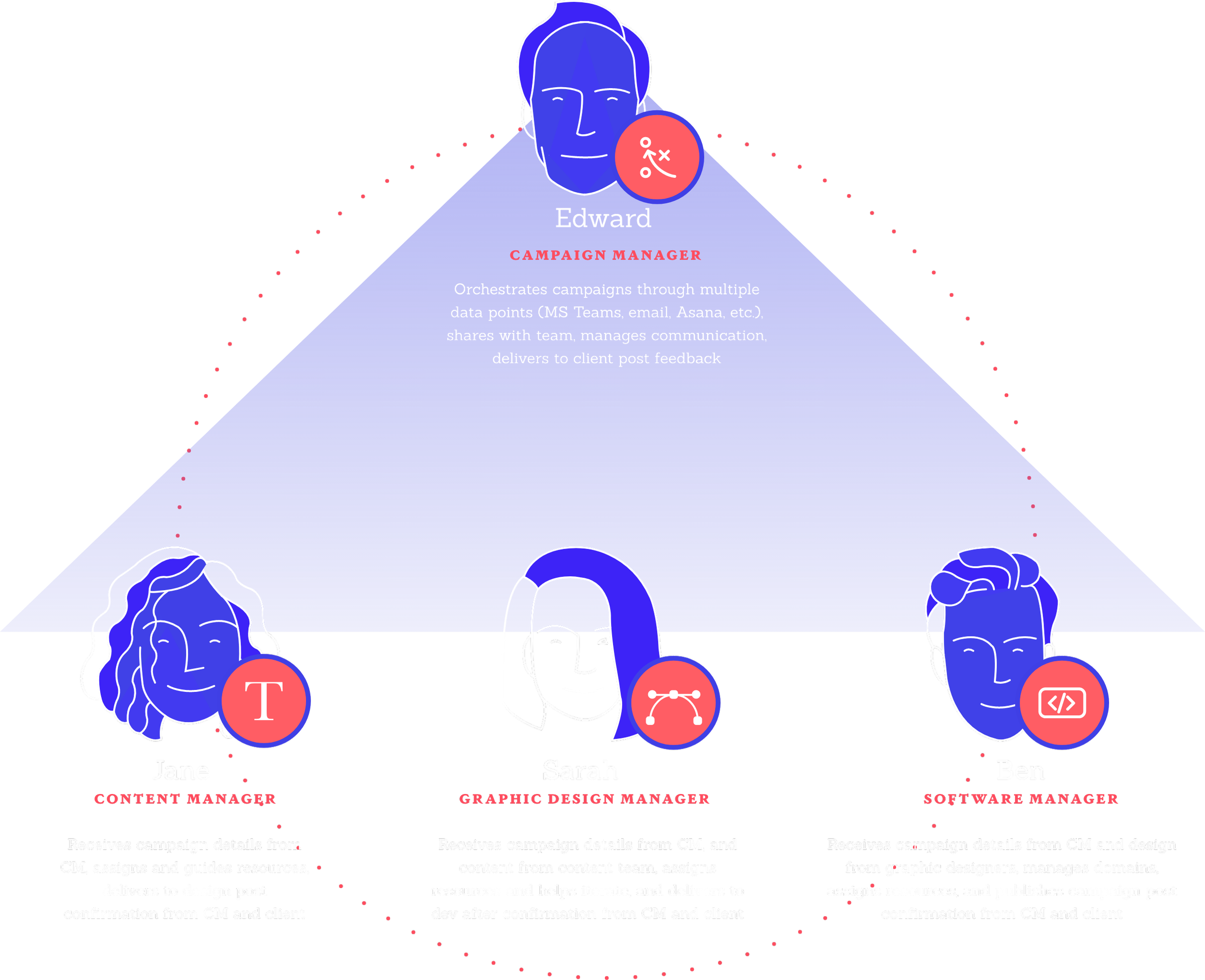 Set up a campaign with relevant channels of distribution, list of requirements, and share it with content and design teams.